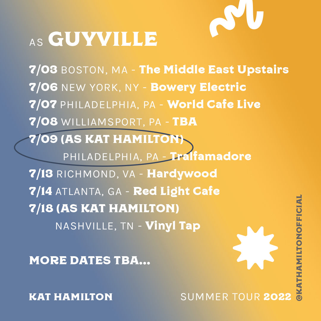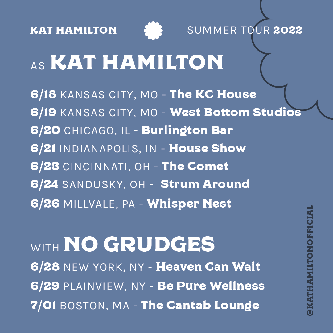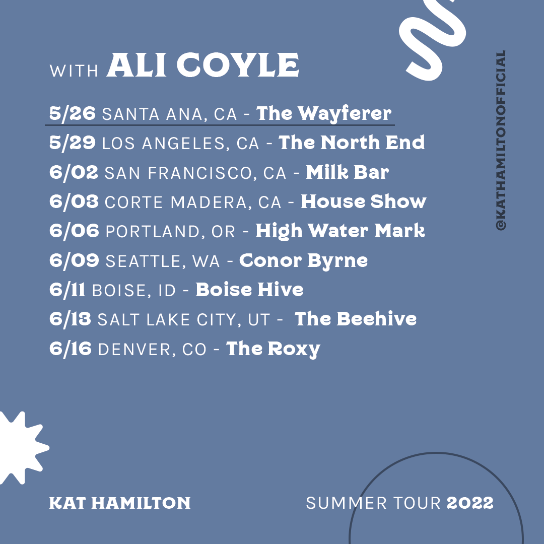 Kat Hamilton starts her tour with Ali Coyle at the North End in Los Angeles. She will also perform some East Coast dates with No Grudges. Her tour wraps up with a string of dates from Boston to Nashville with her side project band Guyville.