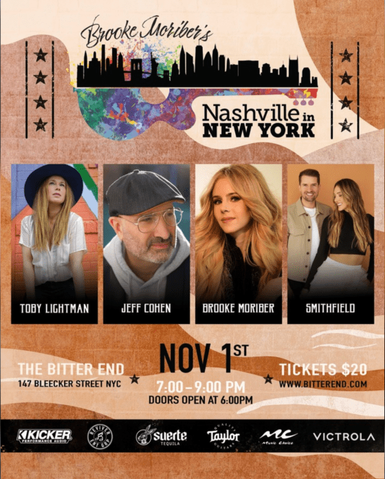 Join Brooke Moriber, Jeff Cohen, Smithfield and Toby Lightman for Nashville in New York at The Bitter End on Saturday, November 1st